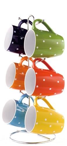 This Mug tree is a 6 pc and comes with the stand. Measure 11 oz.coffee/stoneware finish.