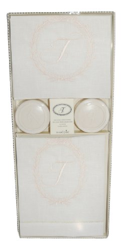 When your home calls for elegance, monogrammed linen towels and hand soaps are just what you need. Set includes 2 linen towels and 2 round vanilla wood scented soaps. Towels are 22-inch by 14-inch each, soaps are 3-1/2-ounces. Give the gift of personal flair with Mud Pie Initials. Monogrammed gifts offer a personalized touch that's perfect for any gift occasion.