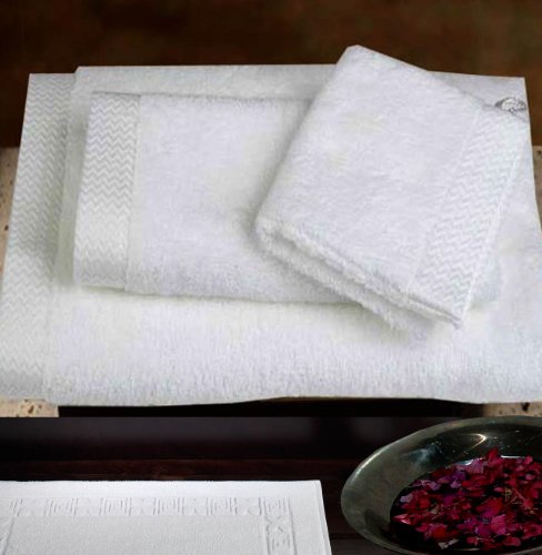 biancheria luxury Line: Dazzling bath linens collection in White Color. Collection includes Guest & Hand Towels, Bath Mat, Wash Mitt made in Europe with fine quality European Cotton, and in very original styling.